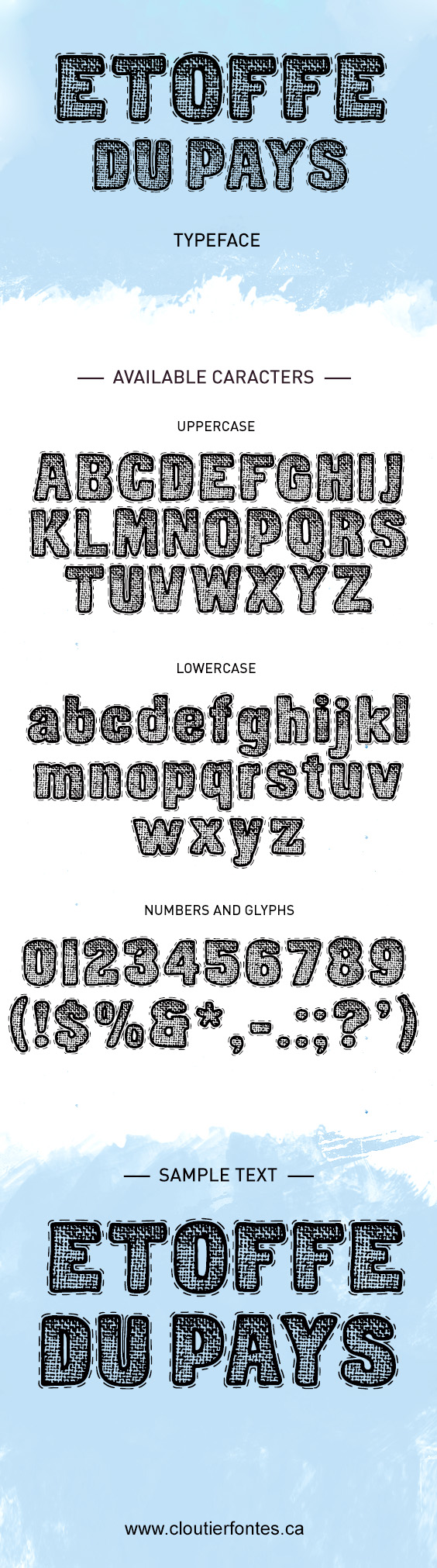 Description CF Etoffe du Pays PERSONAL Regular is a font by Cloutierfontes, designed by Steve Cloutier in 2017.