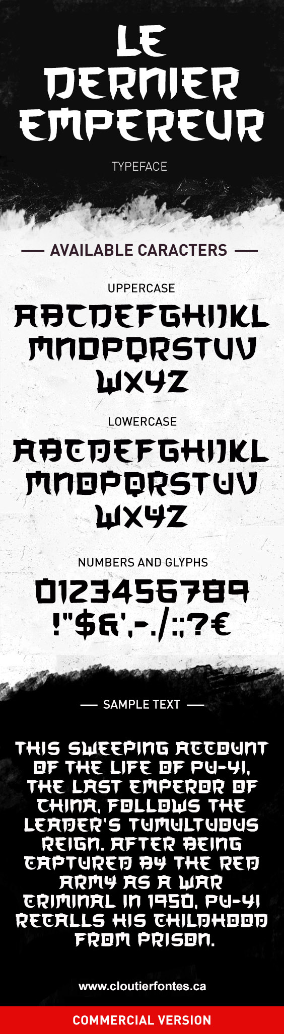 Trademark CF Le dernier Empereur Personal is a trademark of PYRS Fontlab Ltd. / Made with FontLab.