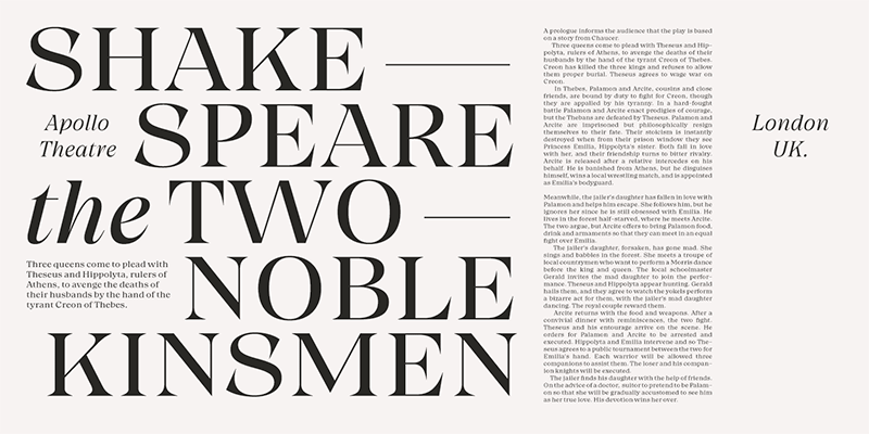 Meet Grand Cru � a new approach to serif type. The type family is divided to three groups � Small, Medium and Large � according to the amount of contrast in letterforms. Forget about those old Text/Display categories � it�s up to you how to use your typeface. While the Grand Cru Large fonts are highly decorative, the Small versions function as reliable workhorses.