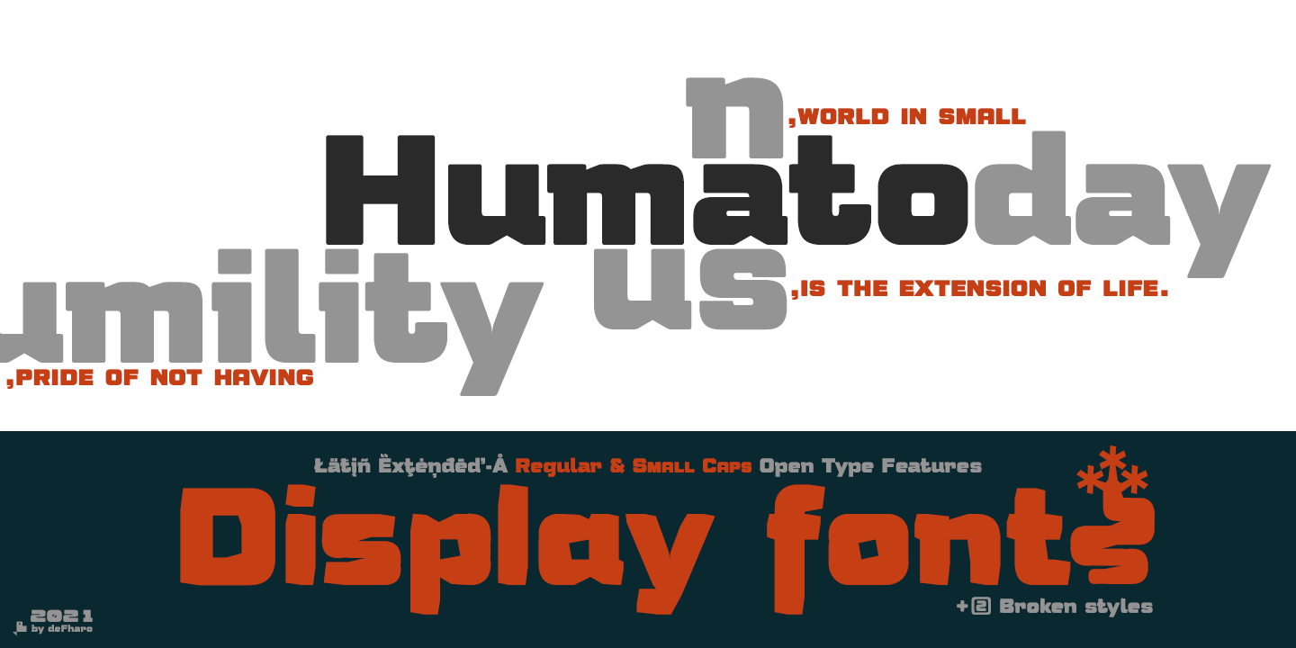 Humato is a family of display fonts, very thick, with a square proportion and rounded corners.