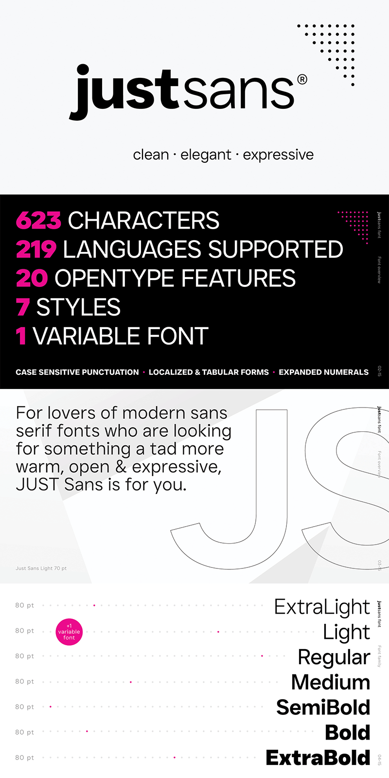 Description JUST Sans was designed by Eugene Tantsurin for JUST Creative in 2022. JUST Sans is a modern sans serif typeface developed together with Jacob Cass.