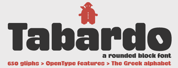 Description Tabardo is a very thick, round display typeface with square proportions. Perfect for titles in editorial design and advertising.