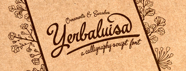Description Yerbaluisa is a joined calligraphic font with ornaments and swashes.